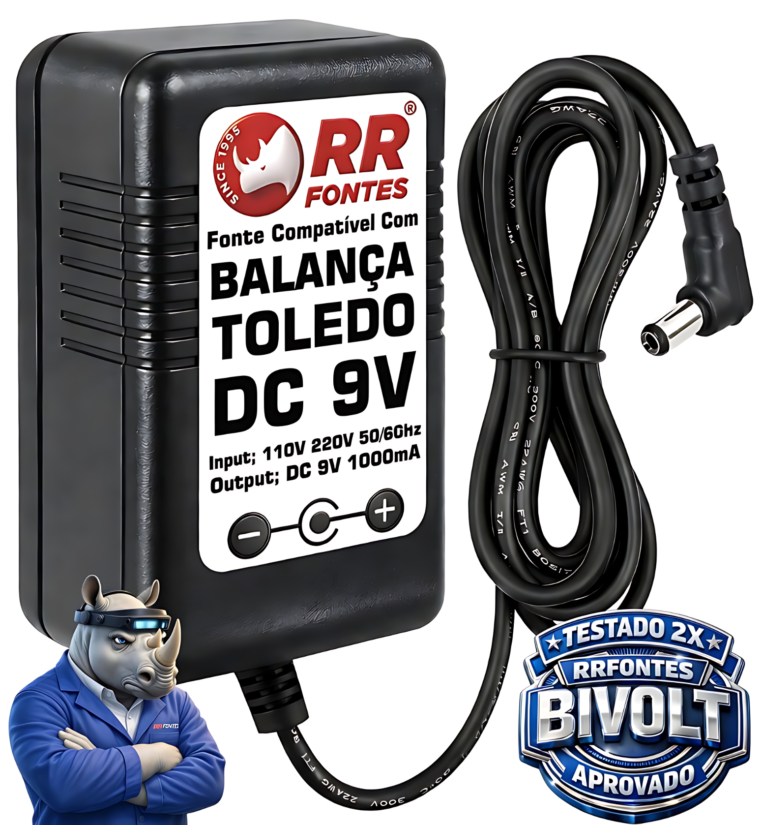 Atende todos os modelos de Toledo que sejam de 9V, com ou sem bateria