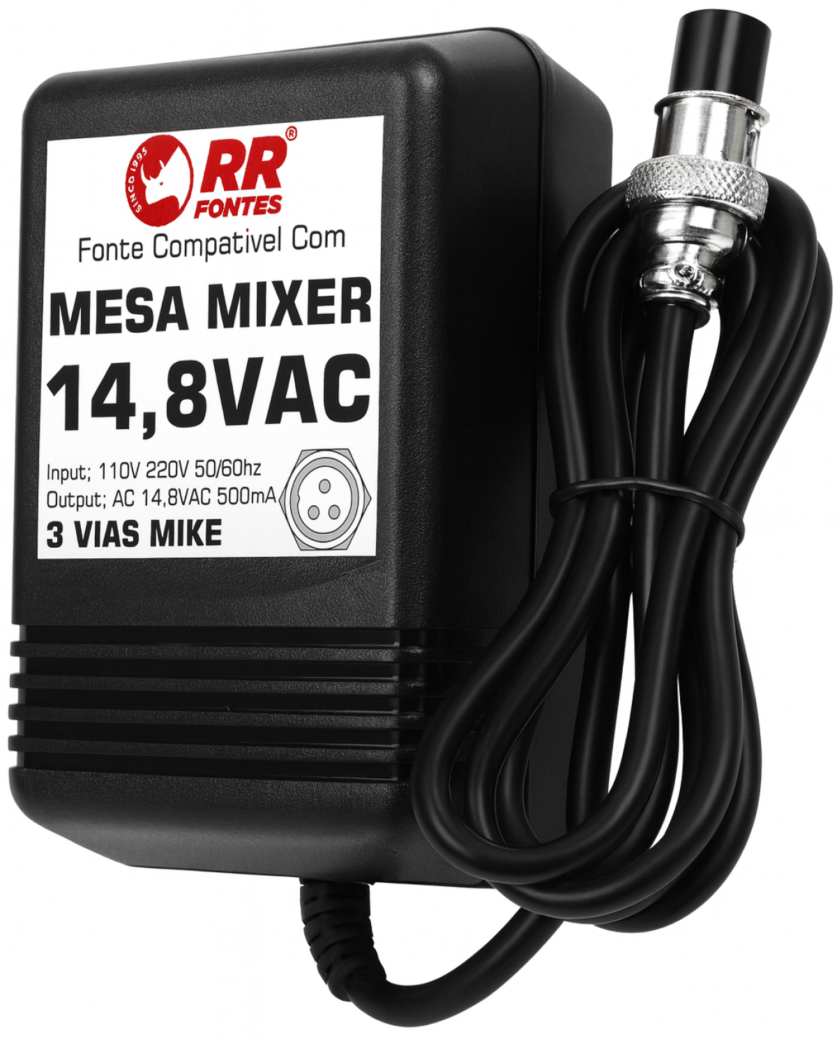 AC 14,8VAC 500mA x2, Plug MIKE 3 Vias, com chave de seleção de voltagem 110v/220v