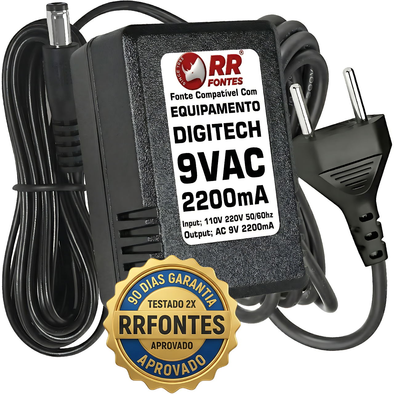 Especificações: AC 9 VAC 2200 mA, com chave de seleção de voltagem 110 V / 220 V