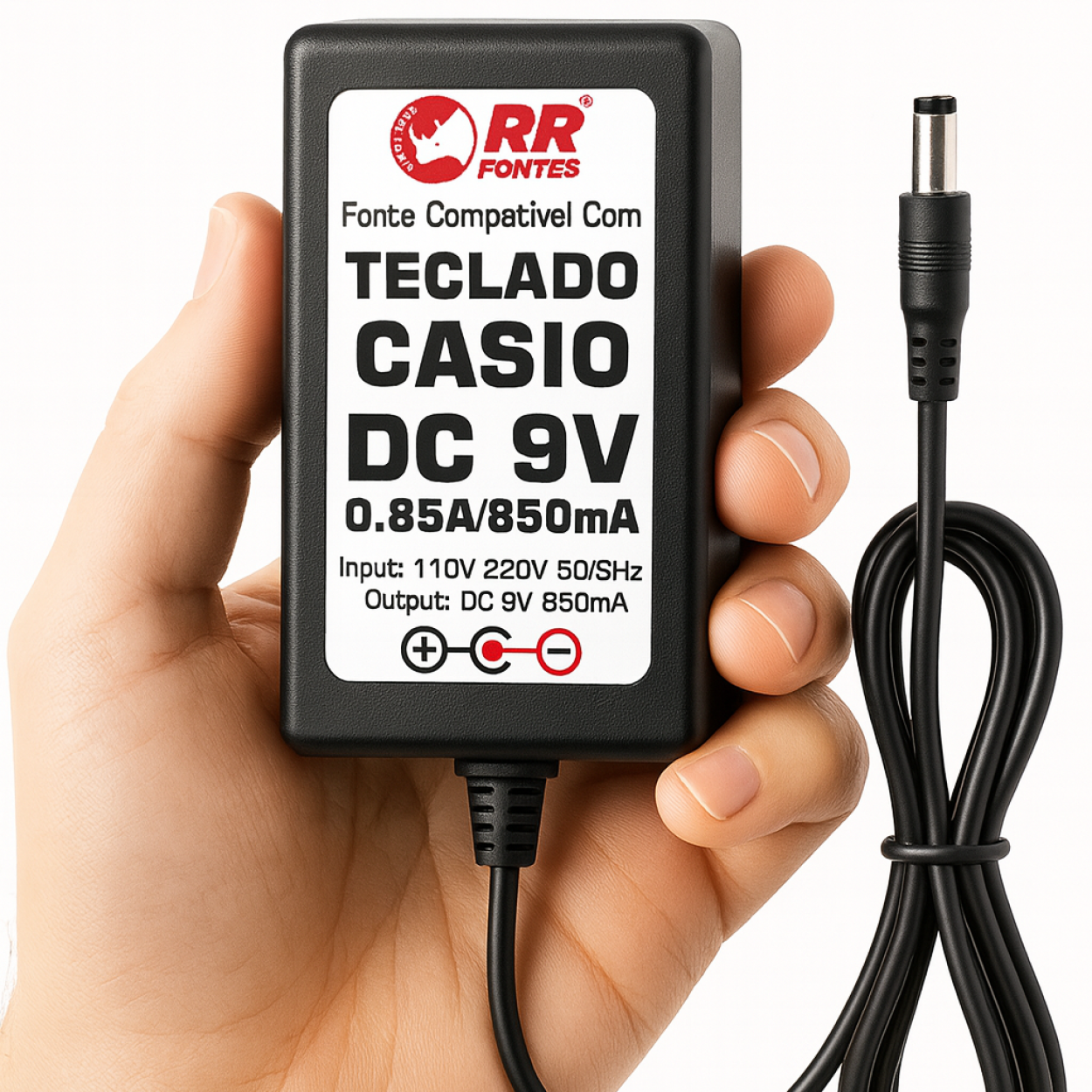 Fonte 9V Compativel Com Casio AD-5 AD-5UL para Teclados CT, CTK, LK, MT, WK, CZ, CA