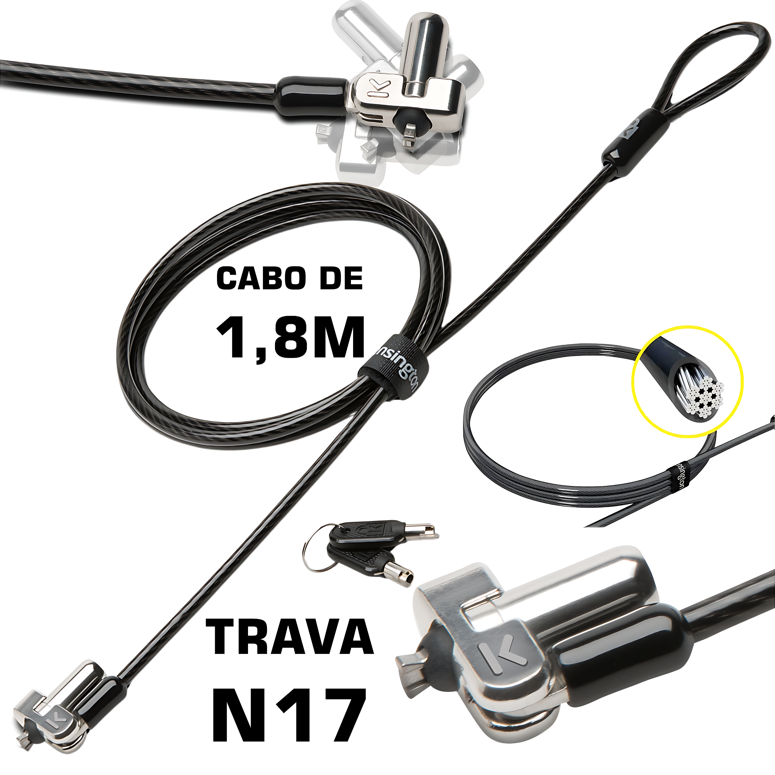 Trava Com Cadeado Compatível Com N17 Kensington - Notebook Dell Preto